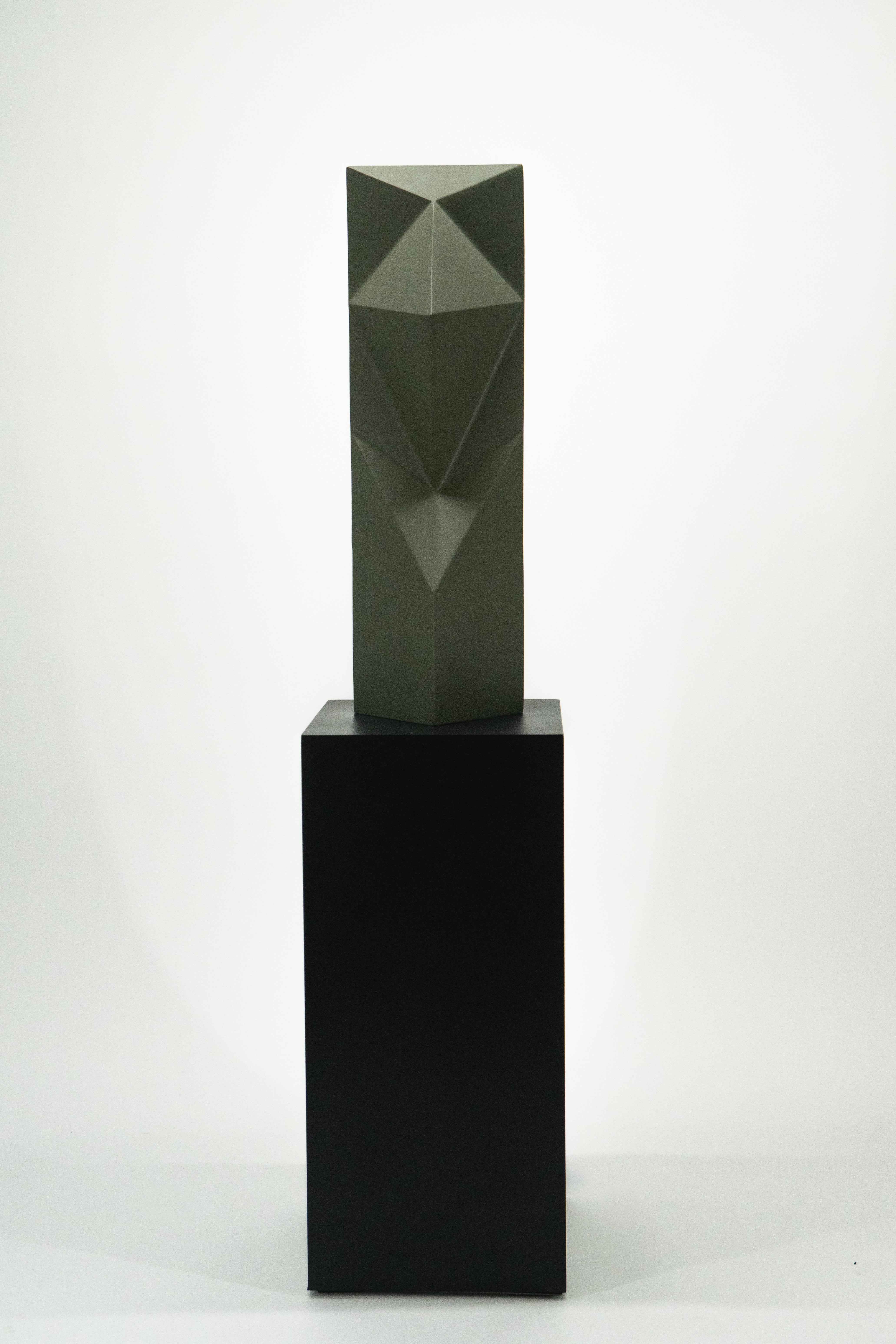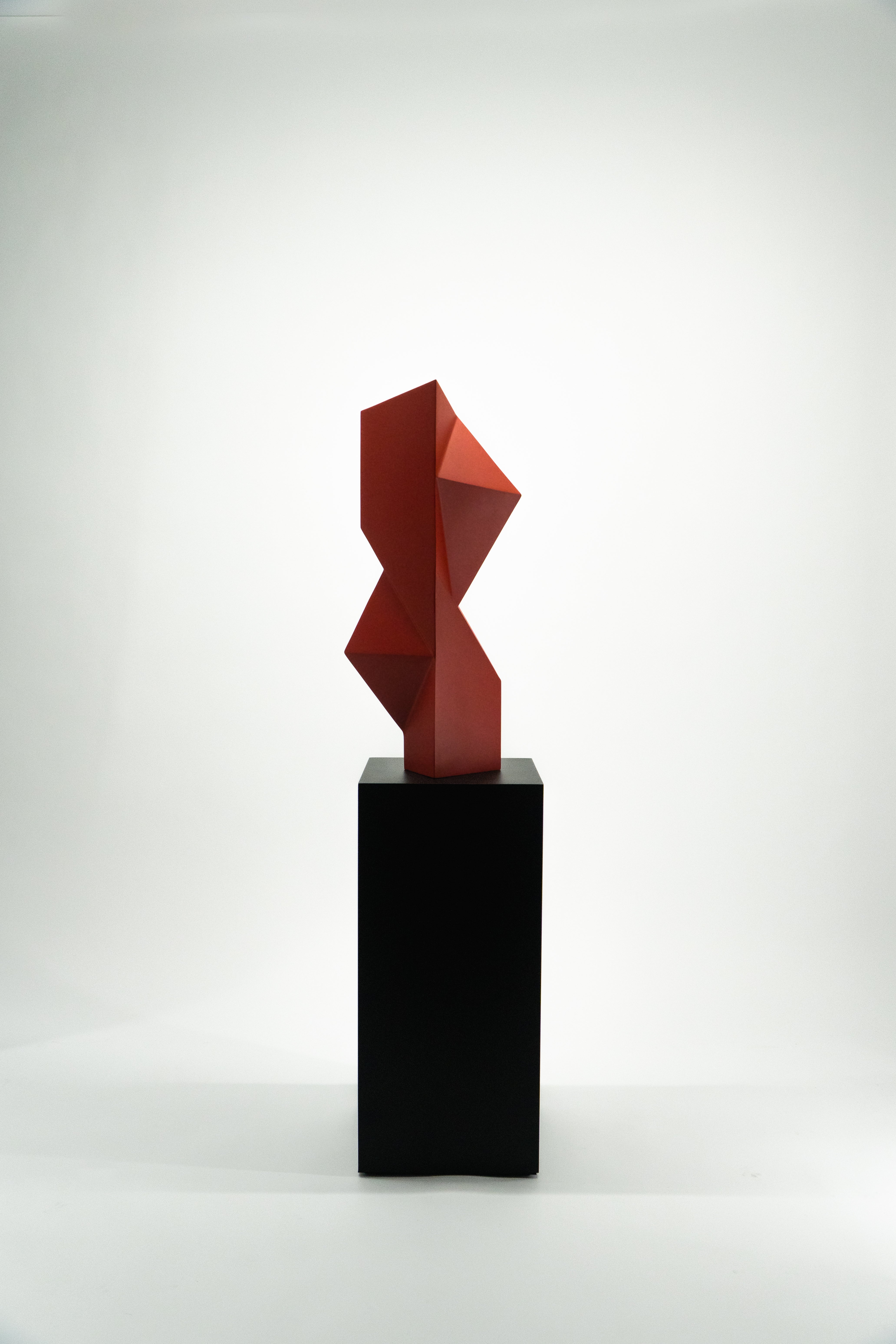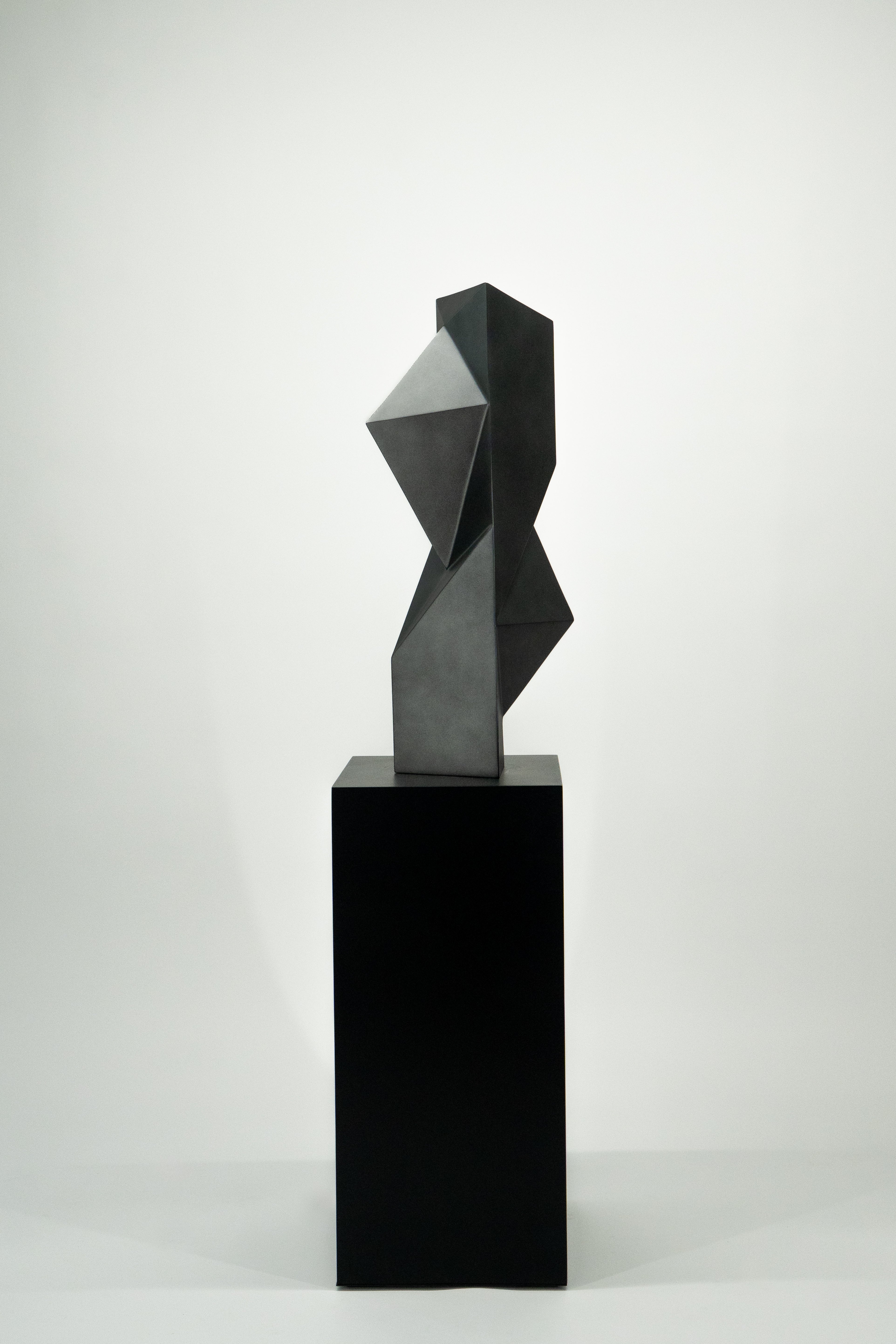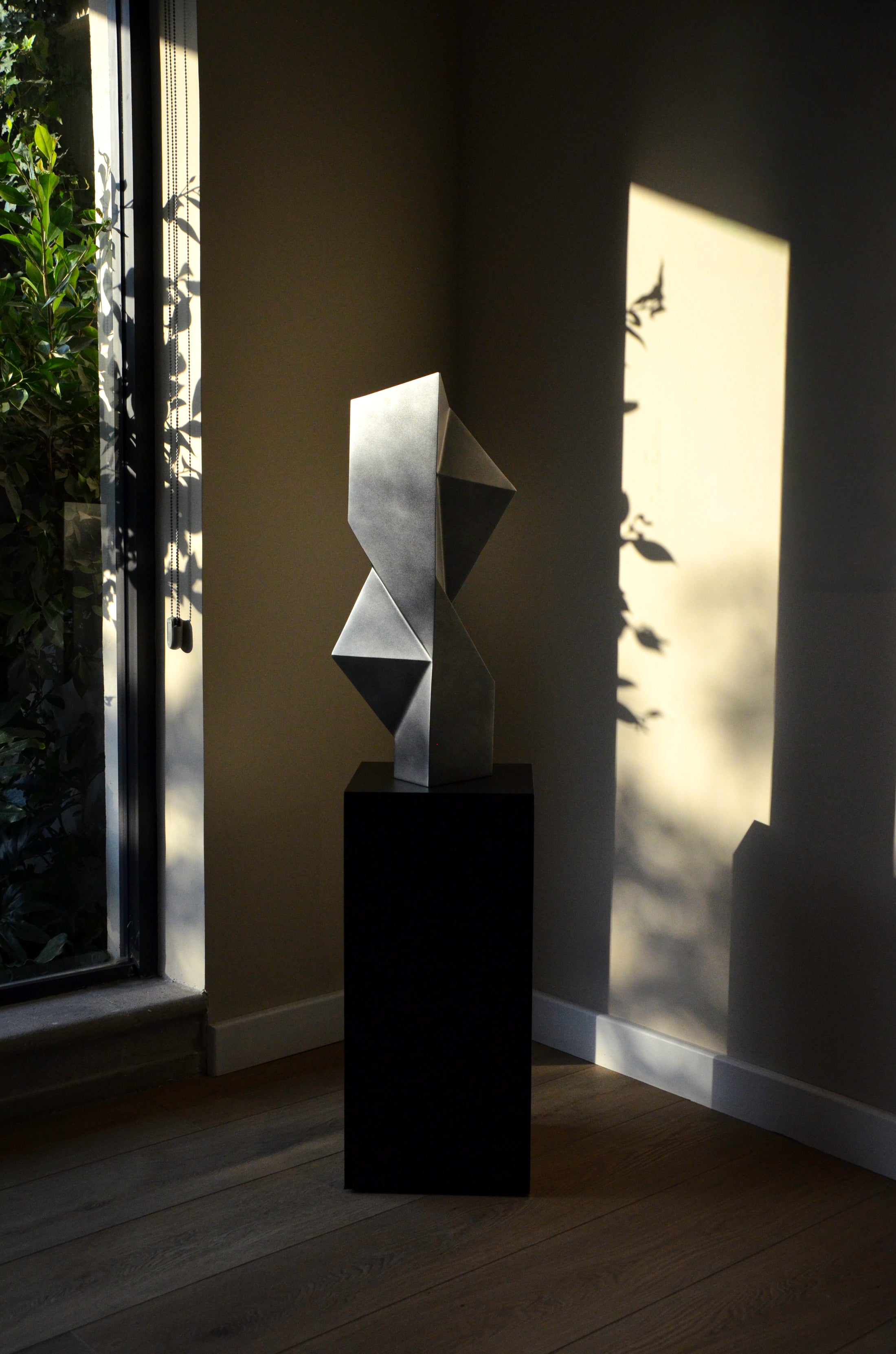 De frente, la pieza parece moverse: sus planos se cruzan y la luz acentúa un ritmo que cambia con cada mirada. Pero al observarla de lado, la forma se vuelve serena, vertical, casi totémica. Un mismo objeto que, según el ángulo, puede parecer energía o quietud, movimiento o estabilidad.